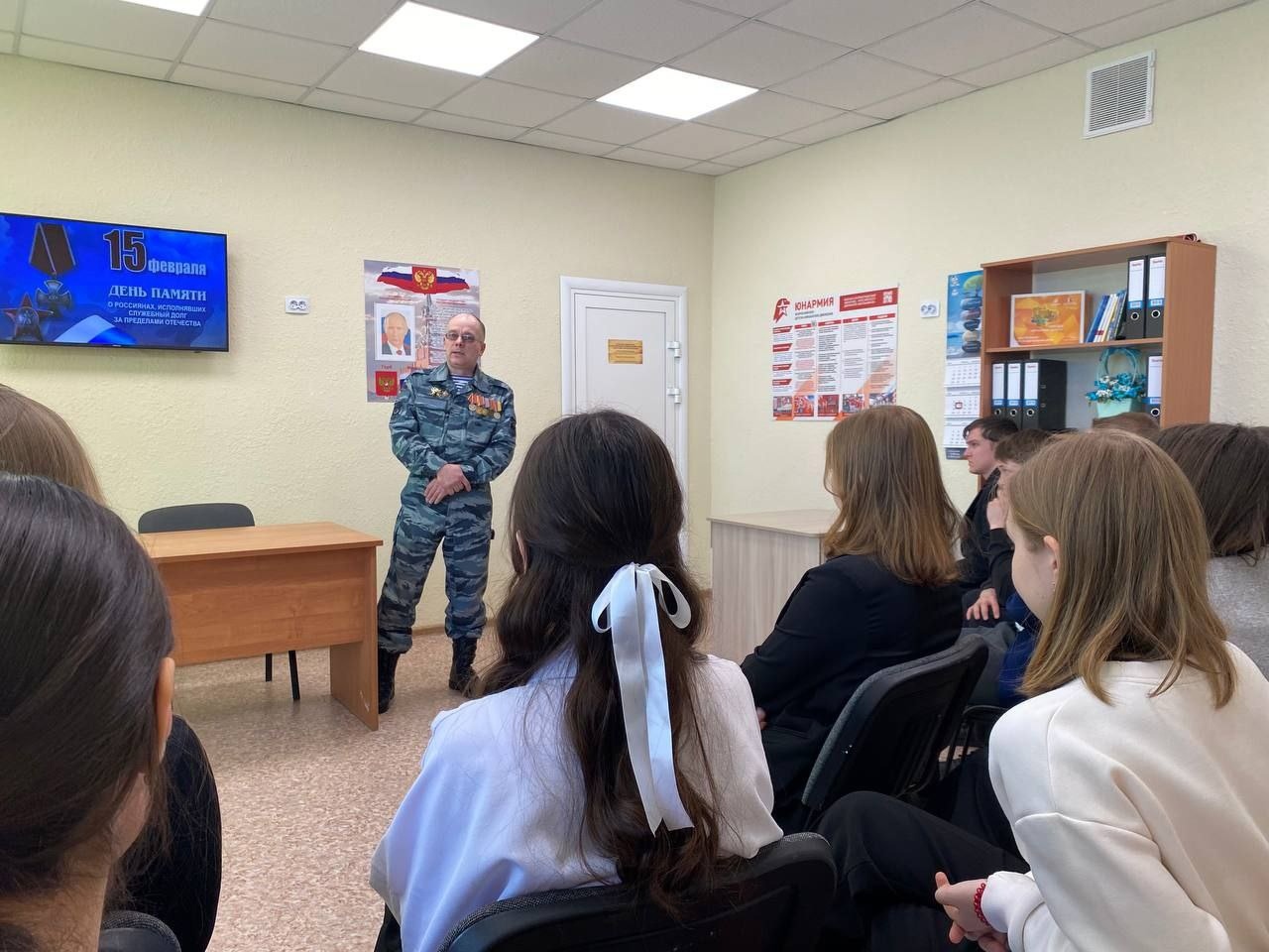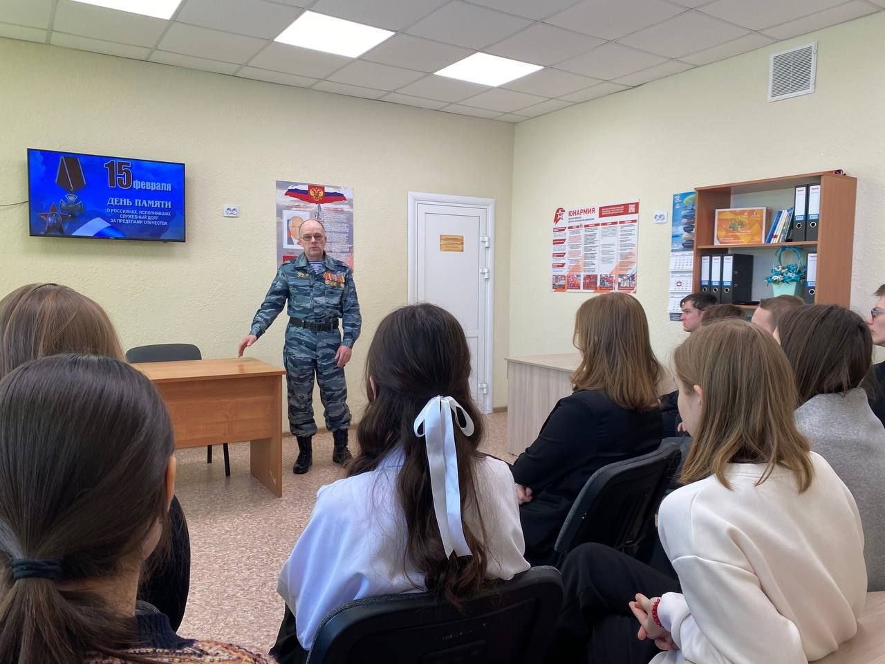 В своём выступлении Владимир Александрович рассказал о себе, своем жизненном пути, о своей профессии и воинской службе, о том, как оказался участником военных событий, как вместе с товарищами выполнял интернациональный долг.