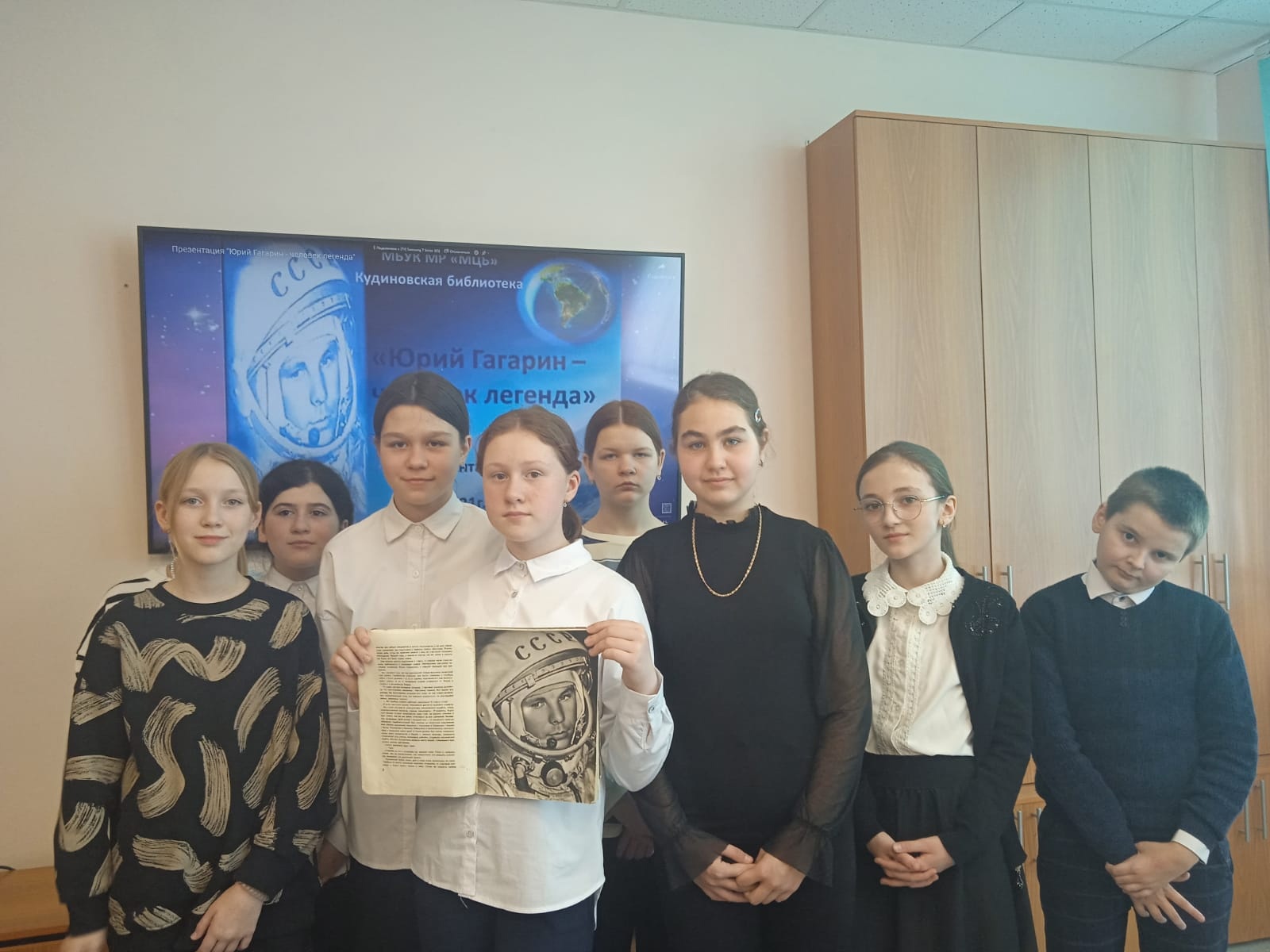 Учащиеся 6 А класса пришли на библиотечный час " Человек-легенда". Дети познакомились с биографией и жизнью Ю. Гагарина, послушали живой голос первого космонавта из фондов Президентской библиотеки. В электронном читальном зале почитали книгу Ю. Гагарин "Вижу Землю", познакомились со статьями из газет " Смена", "Комсомольская правда" за 1961год о полёте в космос. Ребята участвовали в играх: "Предполетная подготовка", "Инопланетяне и земляне".