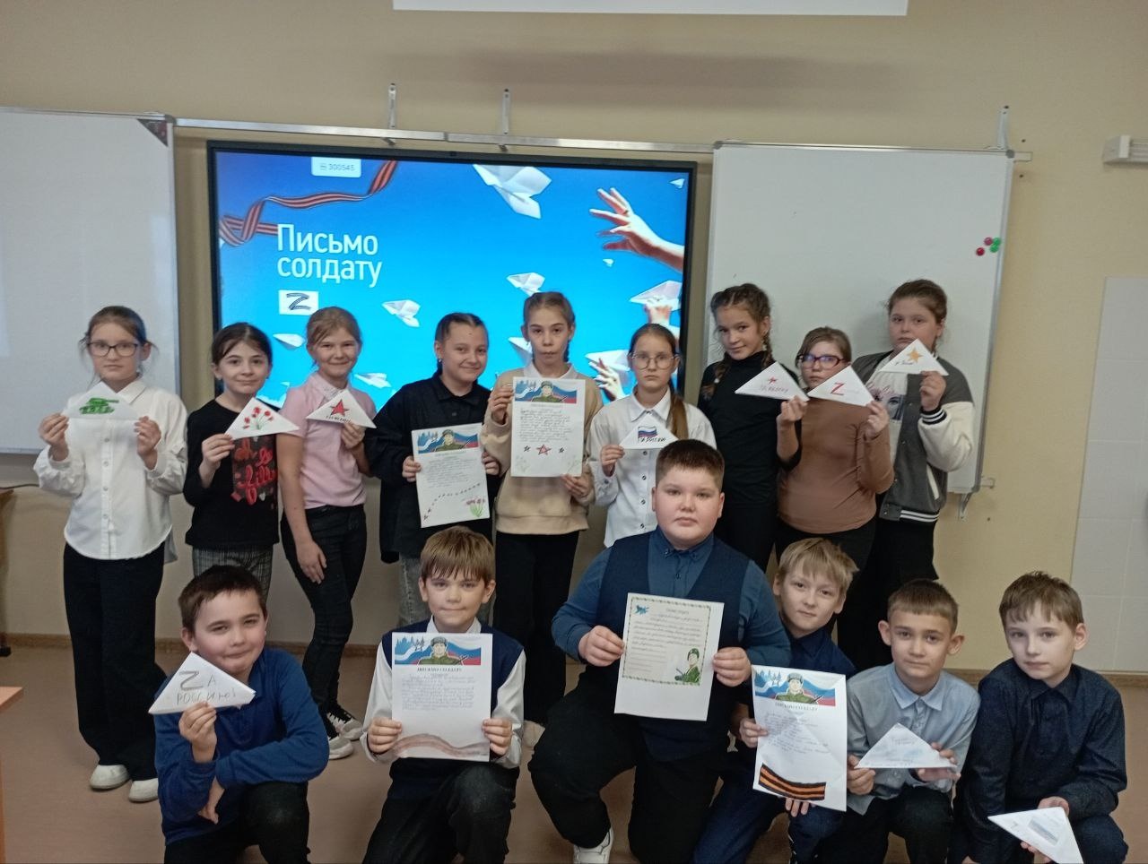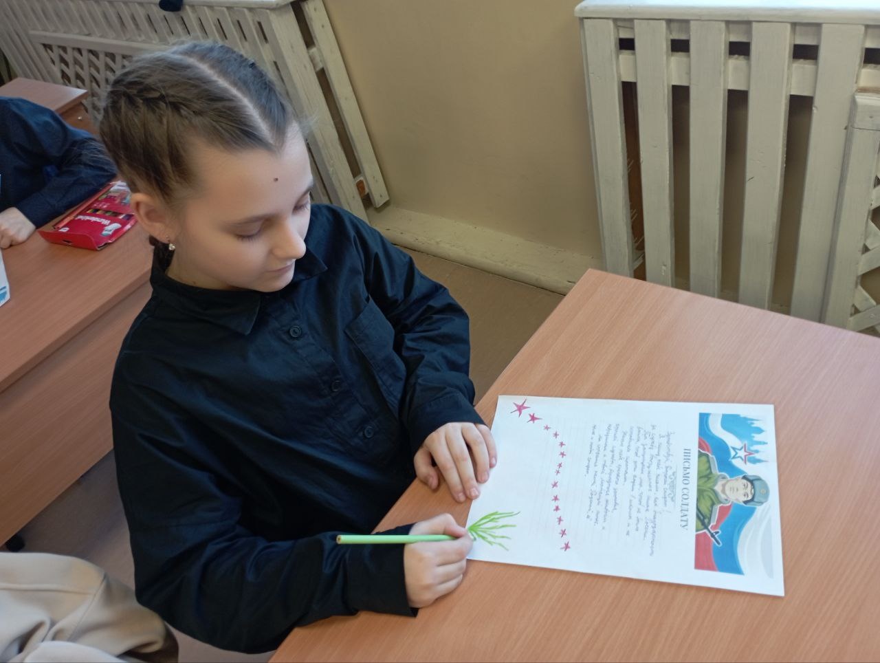Обучающиеся нашей школы присоединились к акции "Письмо солдату" и поздравили бойцов специальной военной операции, пожелав в предстоящий праздник День защитника Отечества добра, мира и скорейшего возвращения домой с Победой.....))))