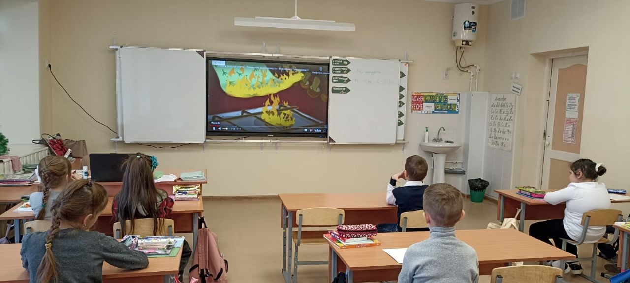 В младших классах проходит цикл занятий "Пожарная безопасность со Смешариками"