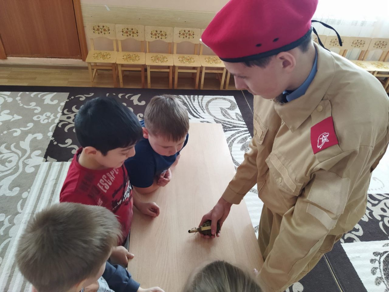 Воспитанники юнармейского отряда "Отечество" посетили детский сад "Родничок". Старшие товарищи продемонстрировали своё мастерство и рассказали детям о своих занятиях в объединении "Юнармия"