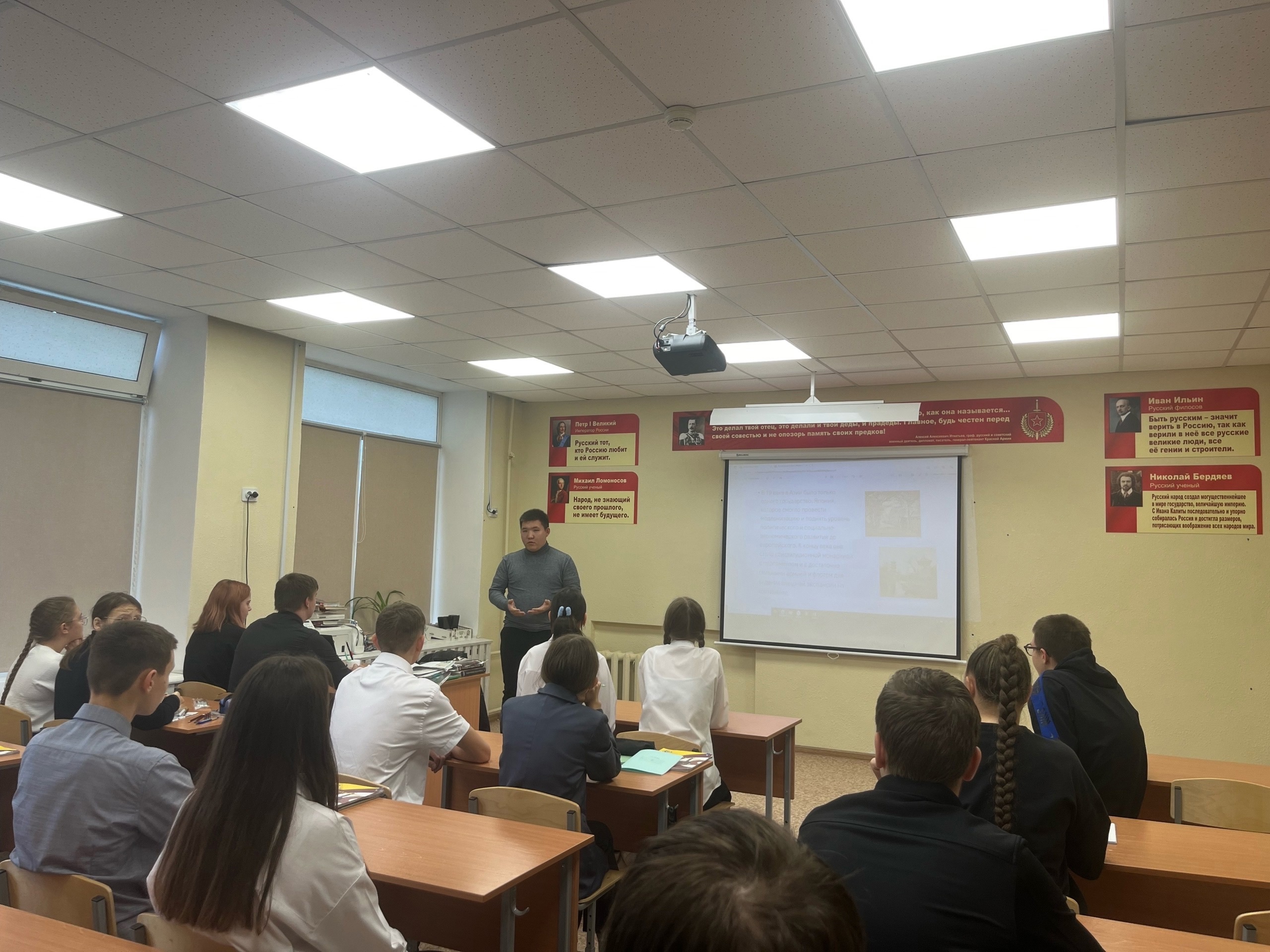 Сегодня для учащихся 10 -11 классов состоялось профориентационное мероприятие "Жить - Родине служить" с участием представителя Пограничного управления ФСБ России по Курганской и Тюменской областям — Цыренова Б.Н.